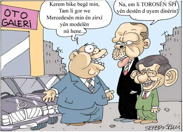 Torosên Spî ku di salên 90'î de pê kurd dihatin binçavkirin û windakirin û niha bi tehdîda Serokê AKP'ê Ahmet Davutoglu dîsa kete rojê bû mijara karîkaturan jî. Ji Evrenselê Sefer Selvî xêz kir. Vaye ew xêz: