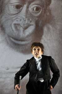 "Meymûna Kafkayê" ji kurteçîroka "Raporek ji bo akademiyek" a Franz Kafka hatiye girtin. Lîstik ji monologa Meymûnek ku hînê axaftinê û hîn bûye wekî mirovek tevbigere pêk tê. Lîstikvan Kathryn Hunter ku bi gelek derhênerên navdar ên wekî Peter Brook re xebitiye, bi awayekî serketî çîroka hebûnê ya meymûnek ku dike bibe însan derdixe ser dikê.