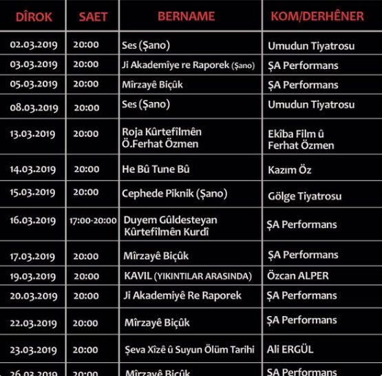 Lîstika Şa Performansê "Ji Akademiyê re Raporek", "Mîrzayê Biçûk" jî di nav bernameyê de ne.