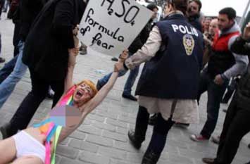 Vê carê koma Femen a ji Ukraynayê ku xwe tazî dikin û çalakiyan li dar dixin para xwe ji polîsên tirk girtin.
