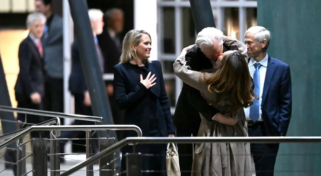 Assange bi destûrek taybet di sala 2022'yan de ligel Stêlla Moris zewicîbû; Niha yekem car ew hembêz kir.