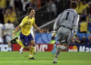 Swêd: Isaksson - Nilsson, Hansson, Melberg, Alexanderson (dq. 74 Stoor) - Ljungberg, Svensson, Larsson, Andersson, Wilhelmmsson (dq. 78 Rosenberg) - Ibrahimovic (dq. 71 Elmander)
