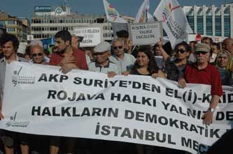 Endamên Meclisa Stenbolê ya HDK’ê (Kongreya Demokratîk a Gelan) ji bo polîtîkaya hikumetê ya Rojava protesto bike û piştgriya xwe ya ji bo gelê Rojava nîşan bide li Kadikoya Stenbolê meşiya.