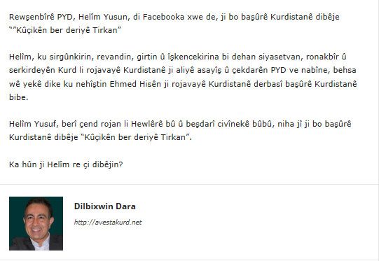 Piştî du rojan, ev rojnamegerê ez behsa wî dikim, kopiya posta (nivîsa) ku min nivîsandibû hem di malpera xwe de ya bi navê Avestakurd û hem jî di facebookê de wekî nûçeyeke berfireh da weşandin. Lê ka em binêrin bê vî hostayê zîrek çi bi naveroka vê hevokê kiriye û bi çi awayî ew belavkiriye: