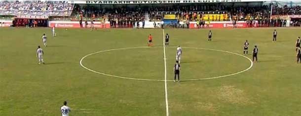 Maç bi lêdana lîstikvanên Fenerbahçeyê dest pê kir, lê we çi ye, Amed sporî li cihê xwe sekinîn e. Piştî nîv deqeyî hat fêmkirin ku protestoyek e ev. Maça Amed Spor û Fenerbahçeyê bi protestoya lîstikvanên Amedê dest pê kir. Bi destpêkirinê re lîstikvanên Amedê rawestiyan û cezaya bê temaşevan lîstinê şermezar kirin. Diyar e lîstikvanên FB'Ê jî berê de hay ji vê hebûn û li gor wê bi qasî nîv deqe wisa lîstin