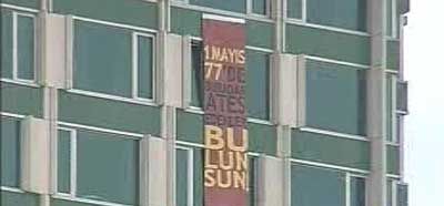 - Yek ji tiştê balkêş; Sivîlên Ciwan li qata pêncan a The Marmara pankarteke têde "Di sala 1977'an de ji vê derê gule bi ser karkeran de barandin daliqand. Yên ku gule barandin wan bibînin." Piştî kurtedemekê ji qata bin a otelê pankarta wan hate qetandin. (Wekî notek: Di 1 Gulana 1977'an ku li Taksîmê hate pîrozkirin de ji wê derê gule bi ser karkeran ve hatibûn barandin, 34 kes miribûn û 136 birîndar bûbûn)