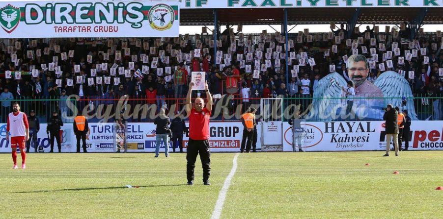 Par roja 28'ê vê mehê Serokê Baroya Amedê Tahir Elçî li ber Minareya Çar Ling ji aliyê hêzên tarî ve hat kuştin. Temaşevanên Amed Sporê li stadê wêneyên Elçî, xebatkaran jî li nava sehayê wêneyê wî vekirin û ew bibîr anîn. Ev wêne ji wir e û em wekî wêneyê rojê pêşkêşî we dikin.