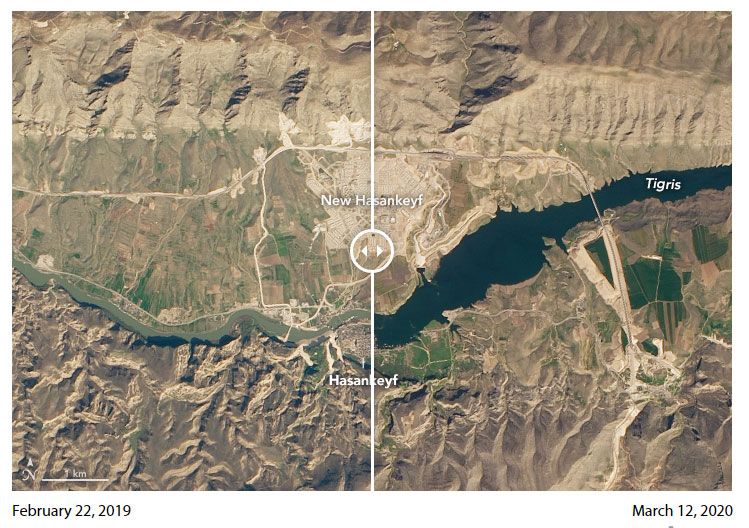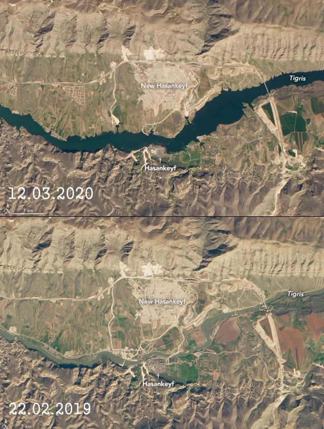 Bendava Ilisû Heskîfa ku dîroka wê digihîje 12 hezar salî noqav kir. Niha roj bi roj Heskîf û derdora wê di bin ava bendavê de dimîne. NASA'yê ji fezayê ve wêneyê bendavê weşand. Wêneyek di 22'yê reşemiya 2019'an, wêneyê din di 13'yê adara 2020'an de hatiye girtin û di wêneyê duyem de bi awayekî zelal bendav dixuye.