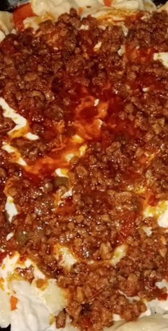 Wexta goştê di tawê de têra xwe qeliya û rûnê qoşt zelal bû min seriyê pîvazê hûr hûr dîlim kir. Pîvaza hûrkirî bera nav goşt da. Du sê bîberê lê zêdekir. Wexta pîvaz û bîber têra xwe qeliyan bacanên sor ê hûr hûr dîlim kirî tevî îsota reş, bîbera hişkirî (pûl bîber) û xwê lê zêde kir.