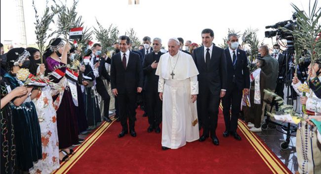 Papayê Vatîkanê Papa Francis piştî serdena Bexdayê vê sibê li Balafirgeha Navneteweyî ya Hewlêrê peya bû. Serokê Herêma Kurdistana Federe Nêçîrvan Barzanî pêşwazî li Papa kir. Barzanî got: “Em bi hemû pêkhateyên Herêma Kurdistanê şanazî bi serdana we dikin û her tim li gel aştî û diyalogê ne.”