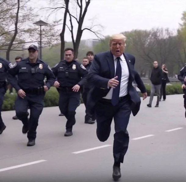 Fotoyên Trump ku ji polîsan direve hatin weşandin. Na, ne ku bi rastî Trump ji polîsan direviya û fotoyên wî hatine kişandin. Mesele ev e. Ev foto bi kodên robotîk hatine çêkirin û hatin belavkirin. Lê piştgirên Trumpî bertek nîşanî van fotoyan da.