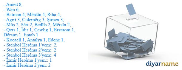 TÊBINIYA DIYARNAMEYÊ: Îhtîmala guharîna hejmara mebûsan biguhere. Heta ku YSK encamên teqez belav neke, em vê naguherînin.