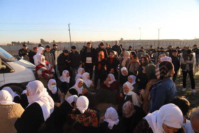 Kom li ber sînor rûnişt û dest bi çalakiya nobetê kir. Mebûsê DEM Partî Ali Bozan ku ew jî beşdarî çalakiyê bûbû axivî û got, "Ligel sînoran jî kurdên li 4 parçeyan hemû yek in. Dilê kurdên her çar parçeyan îro ji bo Rojava lê dide."