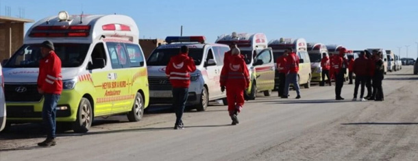 Di çarçoveya agirbesta qismî ya li taxên Şêxmeqsud û Eşrefiyê yên Helebê de, karwana cenazeyên kesên ku canê xwe ji dest dane û kesên birîndar bûne ji nexwaşxaneyan girtin û derbasî Bakur û Rojhilatê Sûriyeyê kirin. Erebeyên girêdayî Heyva Sor a Kurd gihîşt Rojava.